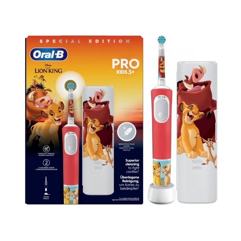 El cepillo de dientes eléctrico oral-b pro kids, recomendado por dentistas para niños mayores de 3 años, proporciona una limpieza suave y eficaz. Con 2 modos de cepillado que incluyen un modo sensible único para niños, este cepillo limpia los dientes con suavidad. Elimina más placa que un cepillo de dientes manual normal. Incluye 4 pegatinas temáticas para personalizar el mango.