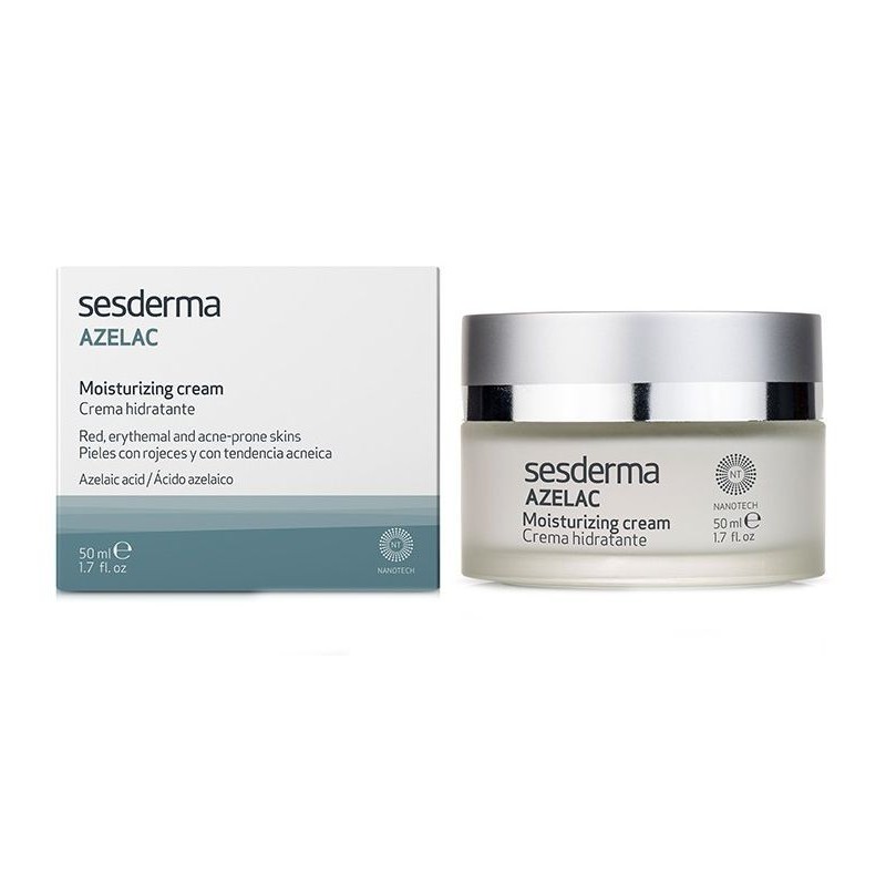 Sesderma Azelac Crema Hidratante 50 ml es una crema hidratante es ideal para el cuidado diario de las pieles sensibles con rojeces. Y si sufres cuperosis y/o rosácea ten en cuenta que tu piel es muy sensible y reactiva por lo que debes escoger cosméticos que mejoren su condición. Específica para pieles secas, Azelac crema aporta activos con efecto calmante y antirradical, hidratantes, acción seborreguladora y antienvejecimiento.
