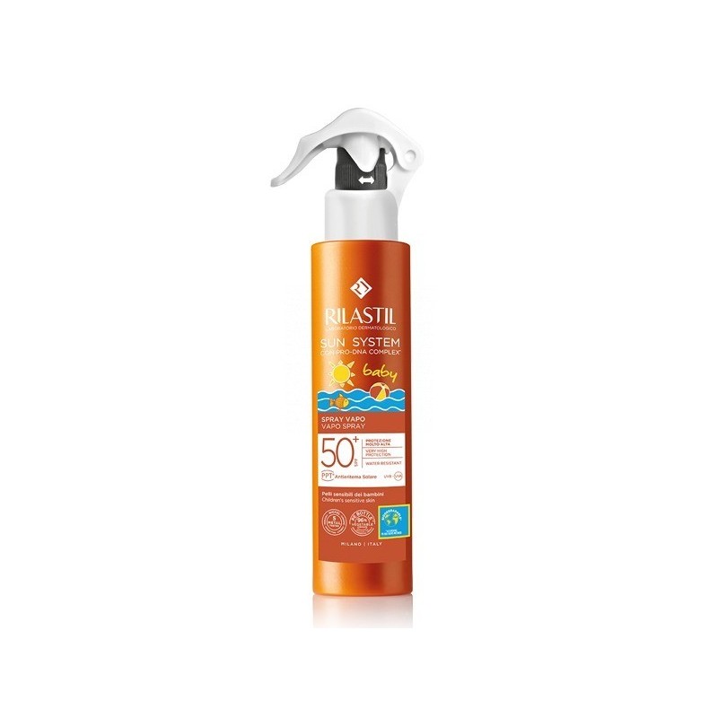 Spray infantil en formato emulsión O/A (fase externa acuosa) de baja viscosidad de alta protección que peviene la aparición de quemaduras y eritemas solares. Protege la piel, manteniéndola sana y elástica.