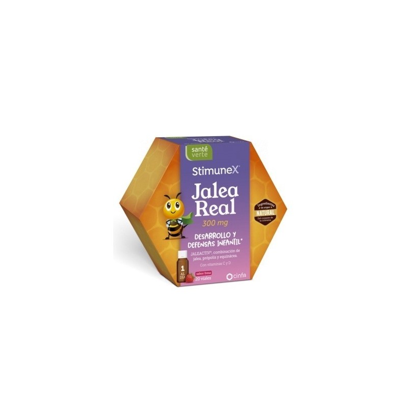 Refuerza el sistema inmunitario, además contribuye al desarrollo normal de los huesos en los niños. Ingredientes de origen natural de gran calidad. Complejo registrado jaleactiv. Caja con 20 viales