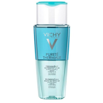 Pureté Thermale Desmaquillante de Ojos Waterproof, con Agua Termal de Vichy, Taurina y Arginina, ayuda a proteger y nutrir las pestañas. Su fórmula bifásica ayuda a eliminar todo tipo de maquillaje, incluso el resistente al agua, de las pestañas y los párpados. Producto de fórmula bifásica que elimina perfectamente el maquillaje, dejando la piel libre de grasa y brillos.