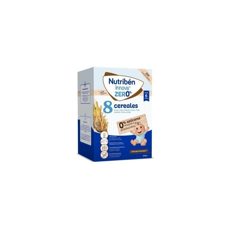 Nutriben Innova 8 Cereales 0% es una mezcla de arroz, trigo, cebada, avena, maíz, centeno, mijo y sorgo con solo el azúcar natural de los cereales. Ideal para bebés a partir de los 6 meses como parte de una alimentación complementaria saludable y equilibrada. Contiene un 99% de cereales integrales, vitaminas, minerales y el postbiótico BPL1®HT para el bienestar de tu bebé. Ingredientes a base de cereales, minerales y vitaminas esenciales, con un ligero aroma a vainilla, y la posibilidad de trazas de soja.