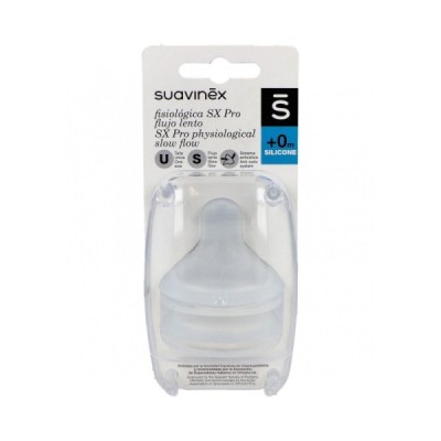 Tetina de silicona fisiológica de flujo lento para niños mayores de 0 meses. Sistema anticólico. MODO DE EMPLEO - No se aconseja emplear técnicas de esterilización diferentes a las recomendadas por el fabricante. - Es importante dejar secar las tetinas antes de guardarlas. PRECAUCIONES Y ADVERTENCIAS - Inspeccionar cuidadosa y periódicamente la tetina para detectar posibles daños, especialmente cuando el niño tiene dientes. Desechar la tetina a los primeros síntomas de deterioro o fragilidad. - No exponer la tetina a la luz solar directa o a una fuente de calor, ni en contacto con un desinfectante durante más tiempo del recomendado por el fabricante, en su caso, puesto que esto podría dañar la tetina. - No introducir la tetina en sustancias dulces, ni medicamentos.